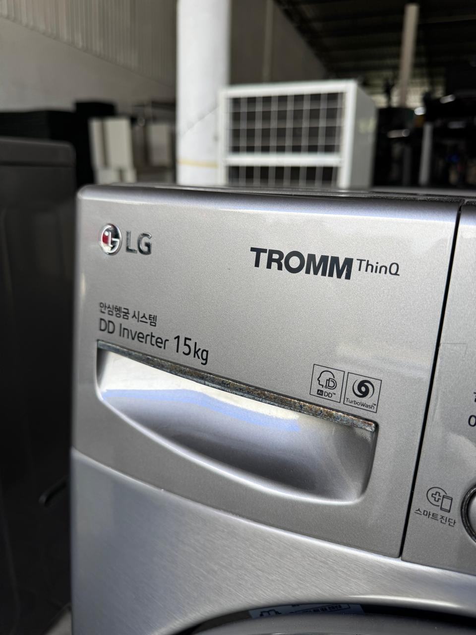 LG 15KG Front Load Washing Machine – TROMM ThinQ Upgrade your laundry experience with this LG 15KG Front Load Washing Machine, designed for powerful cleaning, efficiency, and convenience. Equipped with Inverter Direct Drive technology, it delivers quieter operation, reduced vibration, and long-lasting performance. With a large 15KG capacity, this washer is ideal for families, large loads, and bulky items like blankets and duvets. The machine features multiple wash programs, including quick wash, cotton, delicate, allergy care, and steam options, ensuring optimal care for all fabric types. The ThinQ Smart technology allows for intelligent washing performance and enhanced control, while TurboWash and Steam functions provide deeper cleaning and improved hygiene. Its modern stainless-steel design adds a premium look to any laundry space. Key Features: Brand: LG Model: TROMM ThinQ Capacity: 15KG Type: Front Load Washing Machine Motor: Inverter Direct Drive Smart Function: ThinQ (Wi-Fi capable) Wash Programs: Multiple modes for different fabrics Energy Efficient & Low Noise Durable, modern design Condition: Excellent / Like New Ideal for: Homes, apartments, and large households