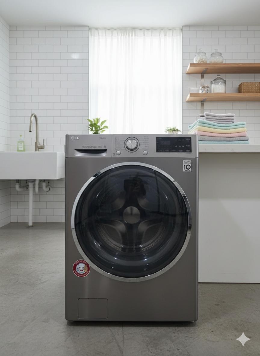 The washing machine is an LG TROMM front-load model, characterized by its large 21kg capacity and a sleek, modern design in a silver finish. It incorporates several advanced laundry technologies for efficiency and performance. Key Features Capacity: A large 21 kg wash capacity suitable for washing bulky items like duvets and large family loads. Motor Technology: Features an Inverter Direct Drive motor, which connects directly to the drum. This design enhances durability, reduces noise and vibration. Washing Technology: 6 Motion Direct Drive: Uses a combination of up to six different washing motions (e.g., tumbling, rolling, scrubbing) to provide a tailored and effective clean for various fabric types. TurboWash™: Utilizes a jet spray to significantly shorten wash cycles, saving time, energy, and water without compromising wash quality. Steam+ / TrueSteam™: Generates steam to eliminate up to 99.9% of common allergens and dust mites, benefiting those with sensitivities.