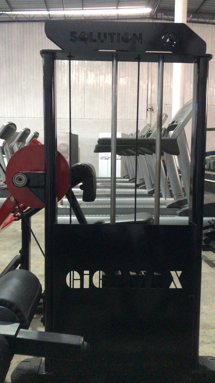 The equipment is a commercial-grade seated biceps curl machine, featuring a robust black steel frame with contrasting red adjustment points and movement arms. Design and Build The machine has a heavy-duty frame (often steel tubing) finished in black, designed for durability in a gym environment. Key components for user interaction, such as adjustment levers and the main cam/lever mechanism, are highlighted in bright red. It utilizes a pin-loaded weight stack system enclosed within the main upright structure for adjustable resistance. Ergonomics and Function The primary function is to provide an isolated and controlled exercise for the biceps muscle. Arm Pad: A large, angled black padded rest supports the user's upper arms and chest, ensuring the elbows are correctly positioned and preventing shoulder involvement or cheating with momentum. Seat: A black padded seat is typically adjustable vertically to accommodate users of different heights. Handles: The user grips handles attached to the red moving arm, which rotates around a fixed pivot point. Movement: The machine guides the user through a natural arc of movement, focusing the contraction purely on the biceps brachii.