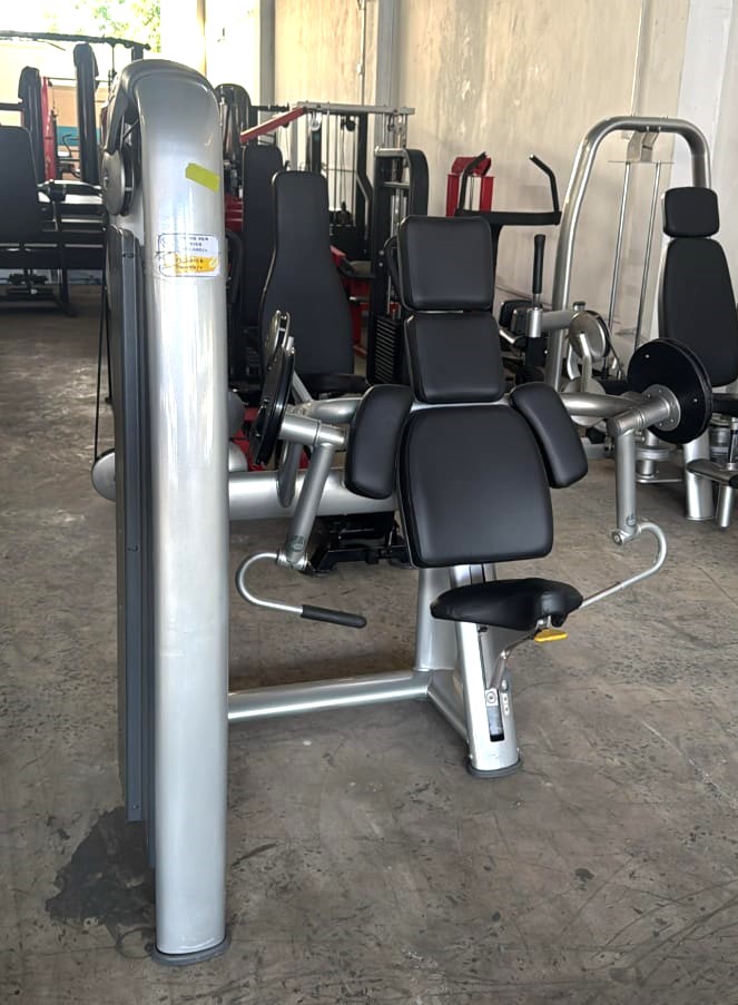 The Technogym Selection Line Leg Extension is a commercial-grade gym machine designed for quadriceps training, known for its ergonomic design and adjustability. Design and Function The machine's primary function is the targeted isolation and strengthening of the quadriceps muscles in the front of the thigh. The exercise motion follows a guided, biomechanically correct trajectory for effective results. It features an anatomically shaped thigh support cushion, which minimises pressure on the knee during use. Key Features Adjustable Position: The user can adjust the seat position and the starting angle (Range of Motion, or ROM) while seated. Weight System: It utilises a pin-loaded weight stack system for selecting the desired resistance. Durability: As a commercial unit, it is built with durable construction to ensure long-term reliability in a gym setting. Visibility: Levers, buttons, and adjustment pins are typically bright yellow and highly visible for ease of use.